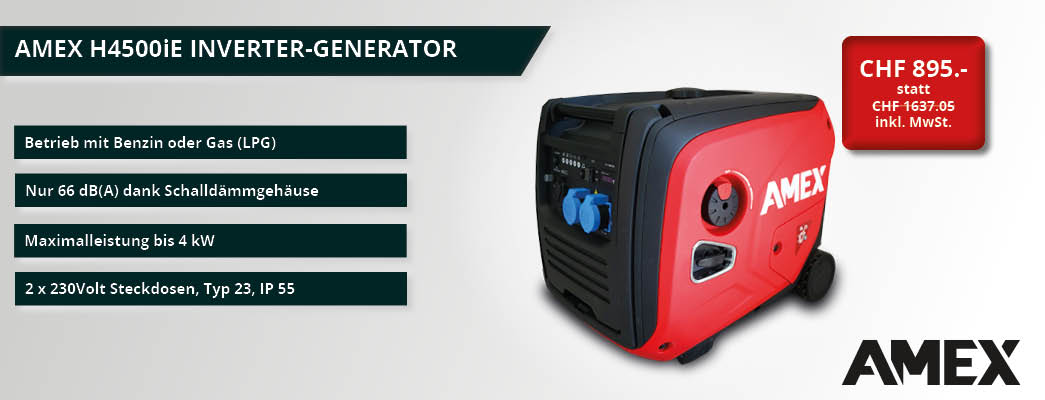 Leiser Inverter-Stromerzeuger, Schalldruck nur 70 dB(A), Höchstleistung 230 V/3.7 kW, Steckdosen, 2 x 230 V Schuko, Elektro- und Handstart, Betrieb mit Benzin, geeignet auch für empfindliche und hochpräziser Elektronik, Computern, Messgeräten usw., fahrbare kompakte Bauweise.