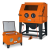 Mit grosser Frontklappe, Fussbedienung, integrierte Absauganlage mit Luftfilter, Volumen Arbeitskabine 825 l, Luftbedarf 400 - 800 l/min, Arbeitsdruck 3.4 - 8 bar, Netzanschluss 230 V, Gewicht 160 kg, 230 V Leuchtstoffröhren, geeignet für verschiedene Strahlmittel wie Glasperlen, Kourund usw., zur Entfernung von Lack, Rost, Verunreinigungen etc. grosser Teilen, inkl. Strahlpistole, Handschuhe, 5 Ersatzfolien und 4 Keramikdüsen, Zusammenbau ca. 2.5 Std. optional